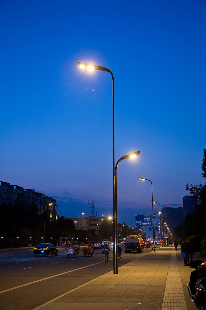 迎賓大道,是北京王府井新區的重要交通要道。2016年3月,耀星光電公司為王府井大道生產制作、安裝了147盞雙葉燈。雙葉燈,是以象征禮節的“茶葉”為設計元素,融入現代簡潔的線條,時尚有韻味,外觀美麗大方,環保節能。燈頭采用茶葉瓣的形式,實現了燈桿與燈頭的實體連接,在原有景觀照明基礎上,增加了功能照明,使功能照明和景觀照明完美結合。該款燈在王府井大道的運用,寓意歡迎“自遠方來的朋友”。
